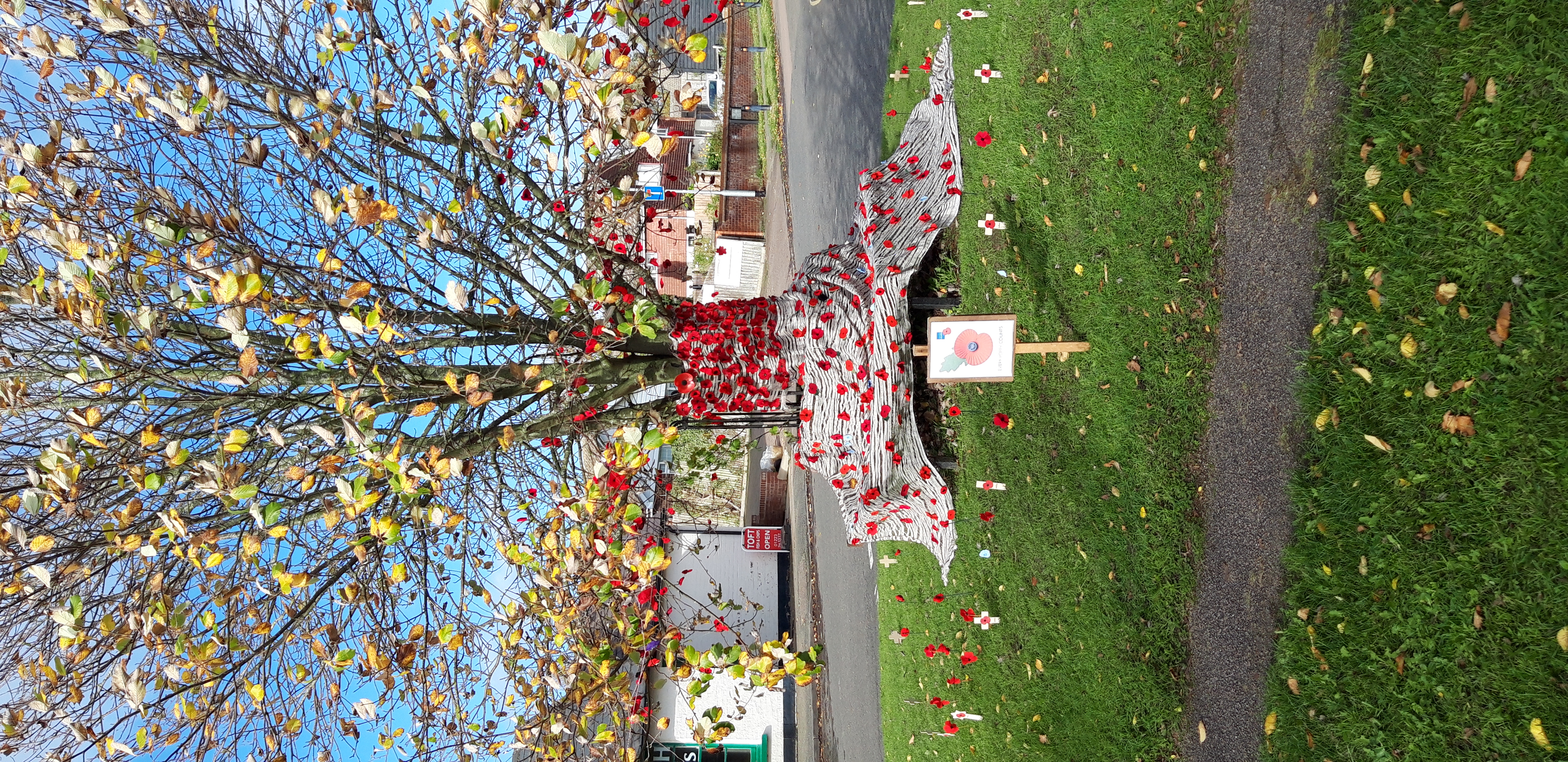 The Sewing, Knit and Natter group decorated the tree on the green this month with a beautiful display of handmade poppies in support of Remembrance Day and a short service was held outside the Methodist Chapel with 10 yr old Emma Mitchel sounding the Last Post.
