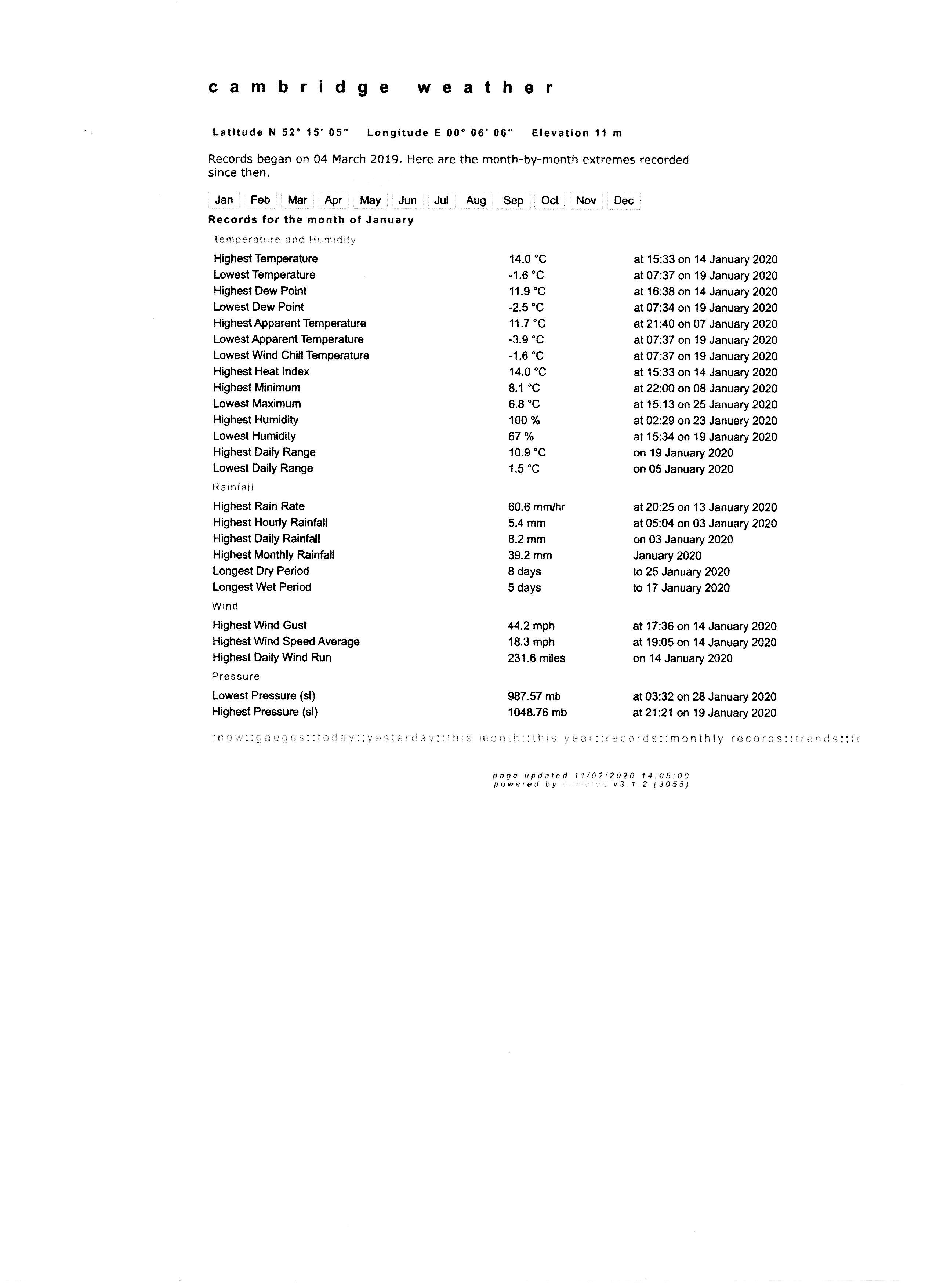 Attached is a summary of the weather in Cambridge for January 2020