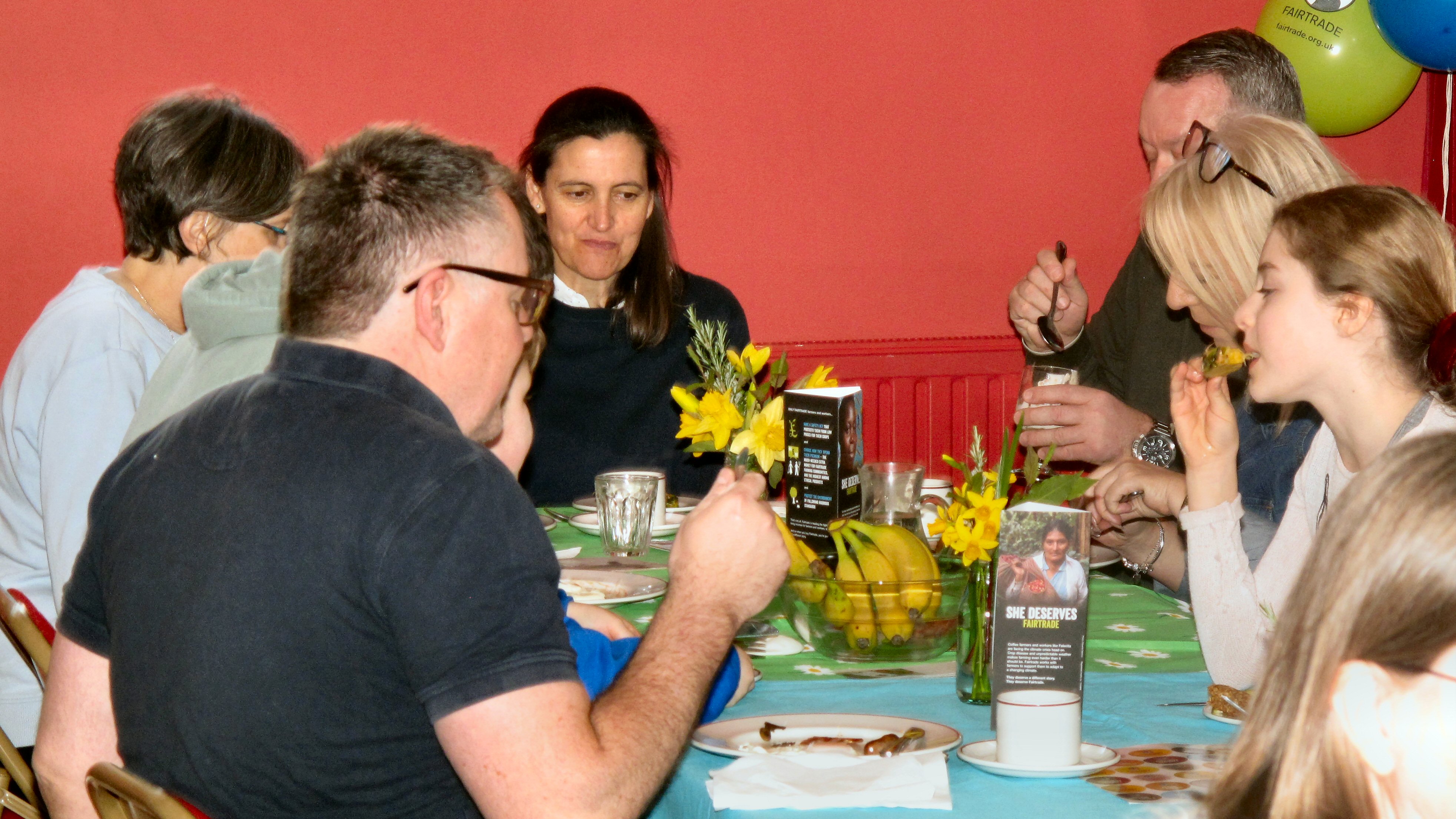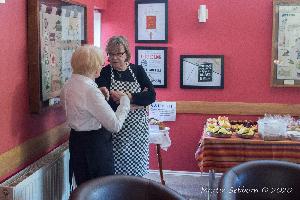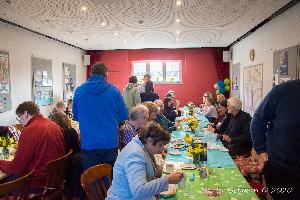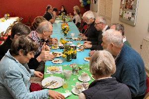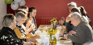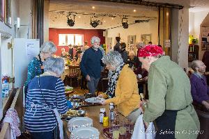 Approximately 40 people enjoyed a valentine "haggis" at our monthly Food on Friday. Inspired by Burns Night, Jean and Jake prepared a meal of haggis, neeps and tatties. Marion and others had desoratedthe hall, with tasteful pink table clothes inscribed with romantic words!
