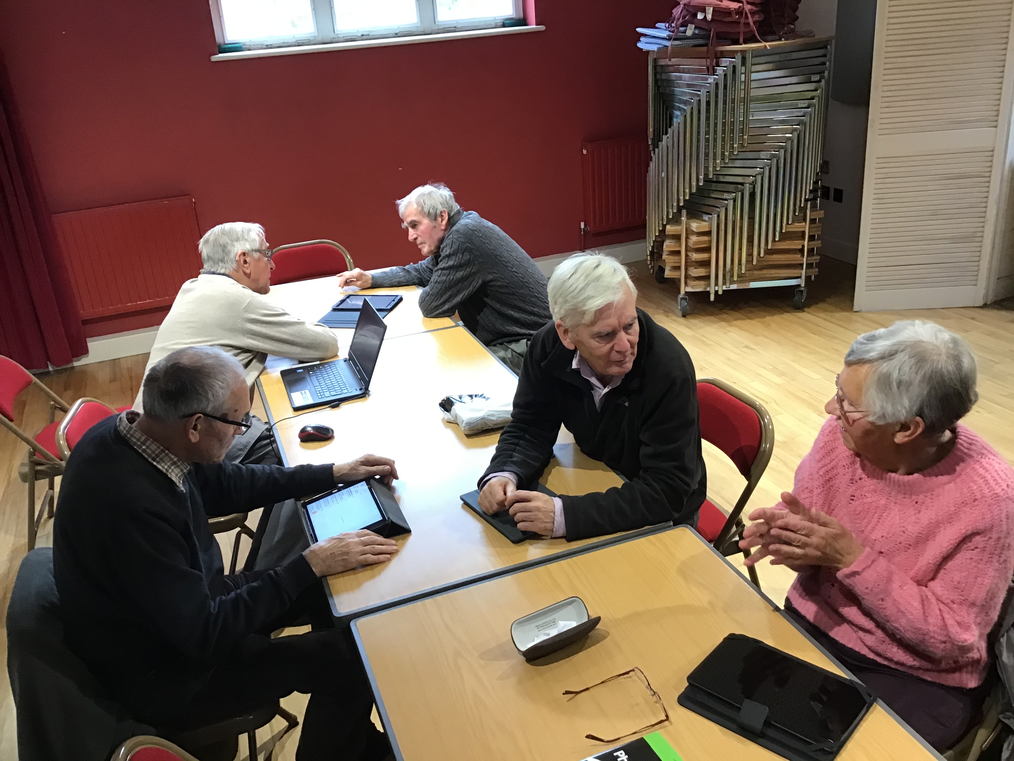 Our principal aim, functioning as a self-help group, is to offer support and guidance to people – generally older people – who currently feel excluded from today’s technological world, or lack the confidence to explore all that the internet can offer. We exchange useful (and sometimes useless) information, solve problems, print out documents … we all learn something new at each session. Some arrive with no computer experience at all – and within a few months are ordering everything and anything online!