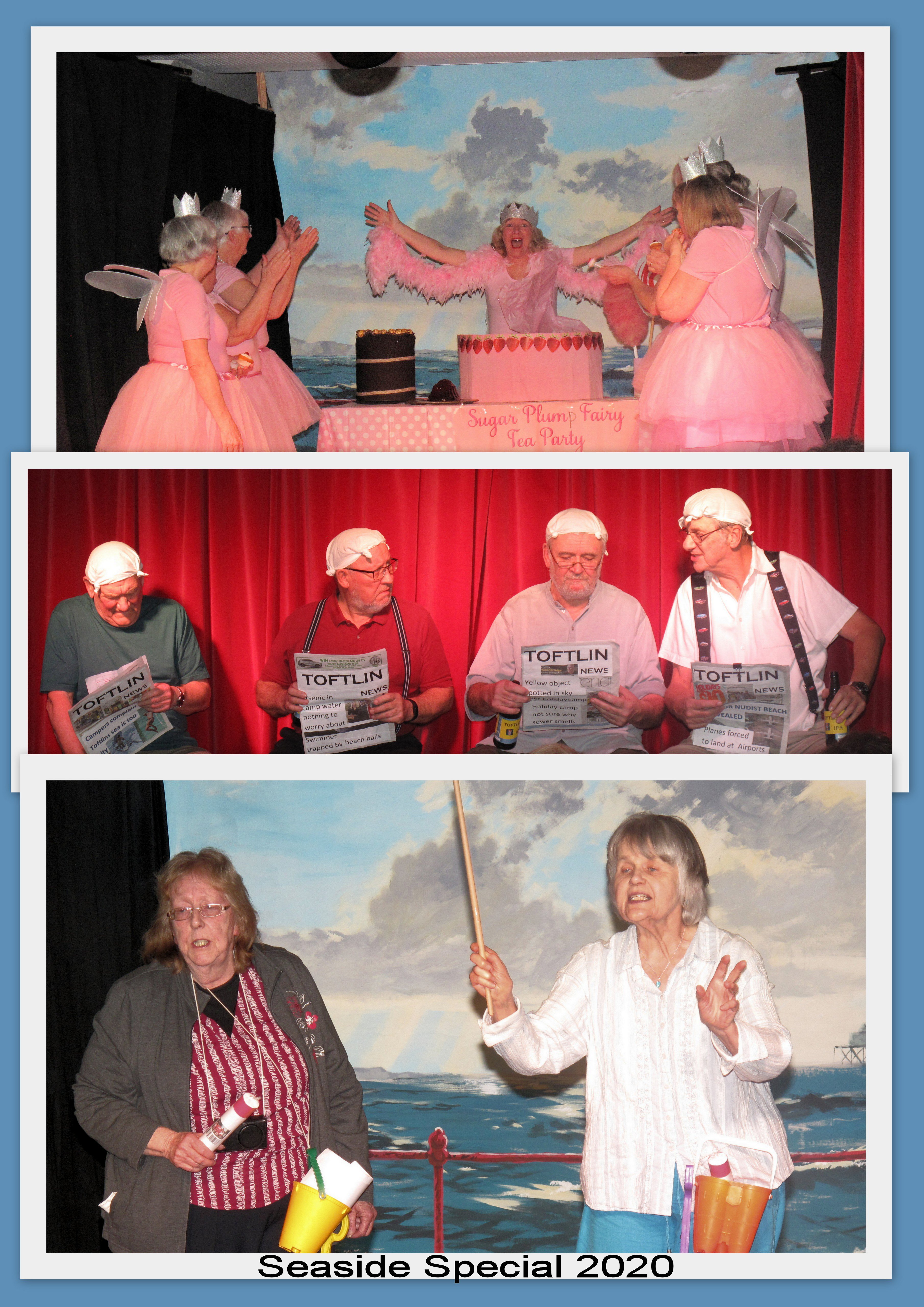 Sunday saw the opportunity for those taking part in forthcoming Seaside Special to rehearse on the stage, and to get the final props, sound and staging right. This all caused much merriment!