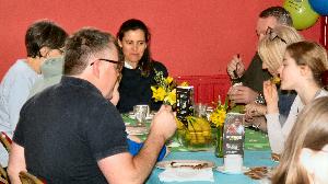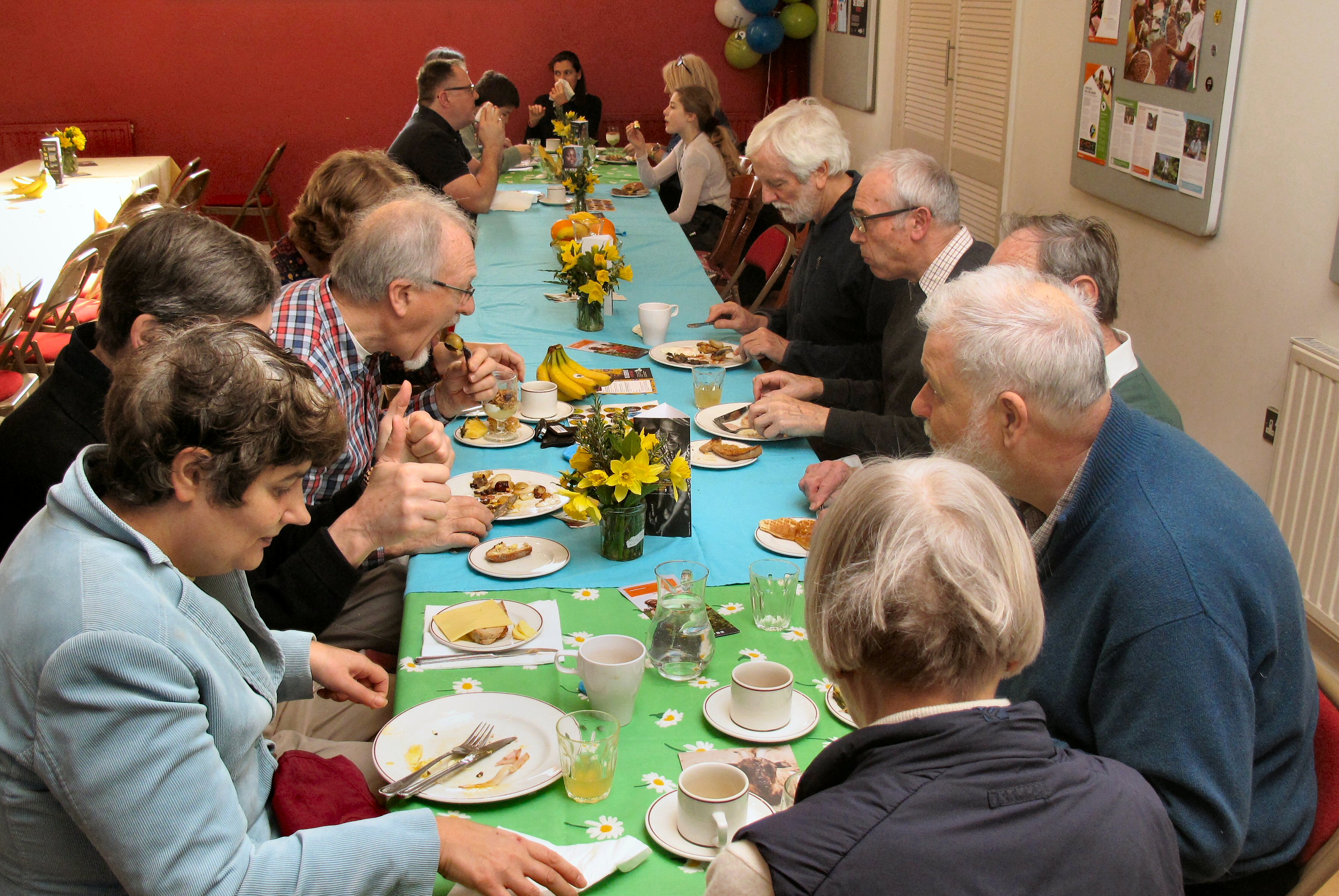 Approximately 40 people enjoyed a valentine "haggis" at our monthly Food on Friday. Inspired by Burns Night, Jean and Jake prepared a meal of haggis, neeps and tatties. Marion and others had desoratedthe hall, with tasteful pink table clothes inscribed with romantic words!