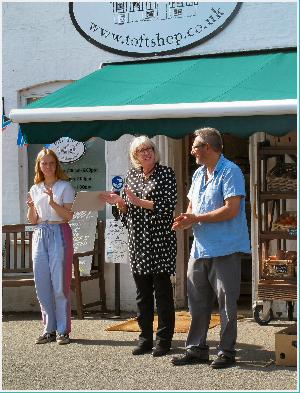 At the Harvest Thanksgiving on 4th Oct Justin and Jenny were presented with a cheque for £2305 following a collection from residents to thank them for their support for the village during the difficult lock down period earlier in the year.